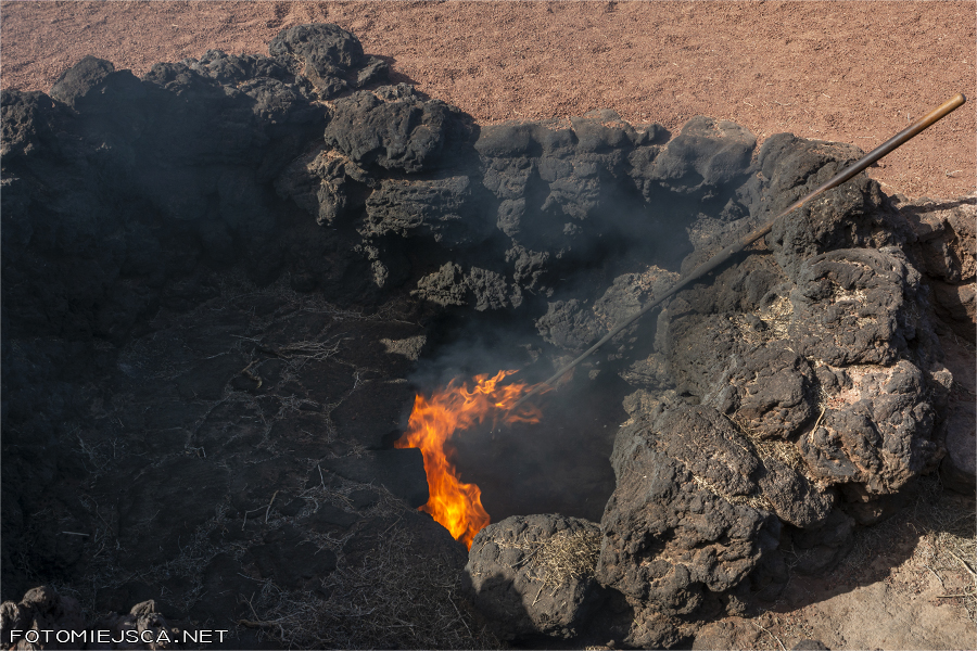 Najpierw do otworu w ziemi wkładane jest siano, które po chwili samo się zapala. Następnie do specjalnie przygotowanych otworów wlewane jest wiadro wody. Po kilku sekundach następuje gwałtowny wyrzut pary i wody w górę, jak w gejzerze. To wyraźny znak, że kilkanaście metrów pod powierzchnią ziemi wciąż panuje bardzo wysoka temperatura.