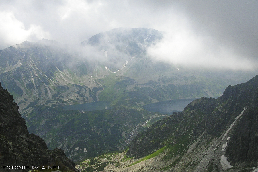 Pogoda całkiem się poprawia dopiero wtedy kiedy docieramy do Krzyżnego. Odsłaniają się szczyty Tatr Wysokich i cała Dolina Pięciu Stawów Polskich. Rewelacyjnie widać stawy i schronisko.