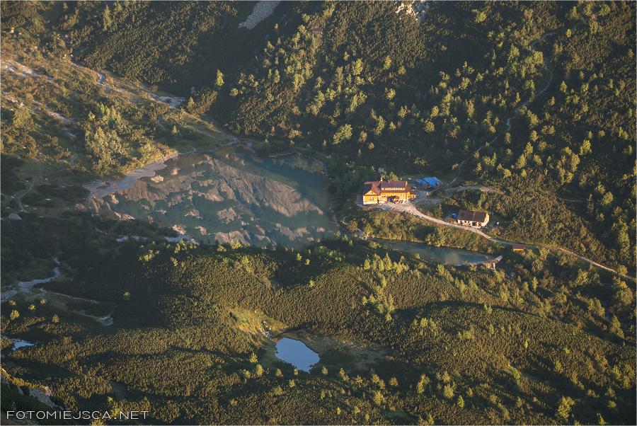 Z góry oglądamy schronisko i Zielony Staw Kieżmarski. Byliśmy tam dwa lata temu kiedy zdobywaliśmy Jagnięcy Szczyt.