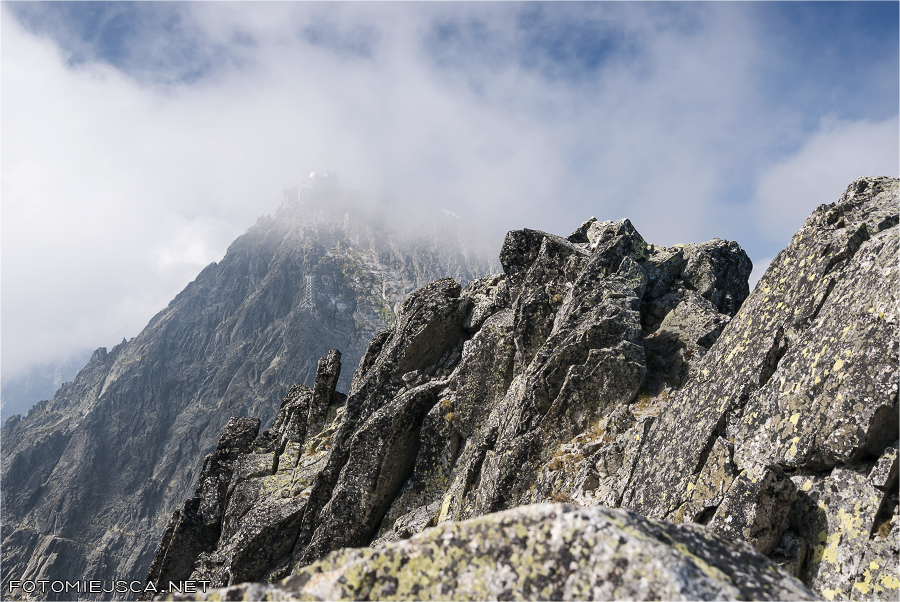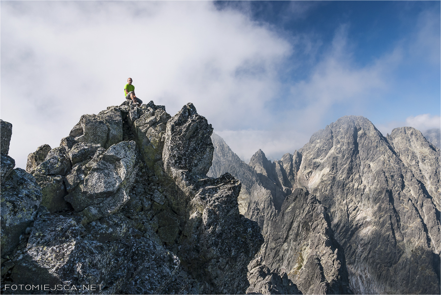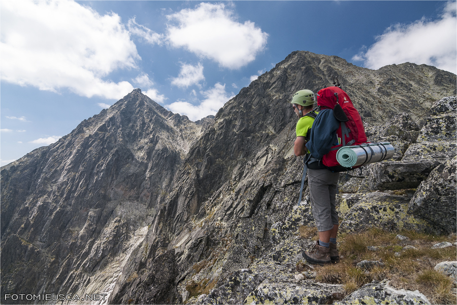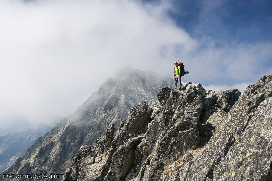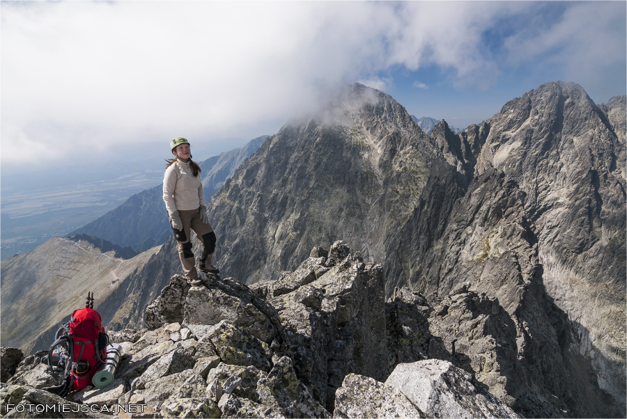 Łomnica jest jakby na wyciągnięcie ręki, ale to Grań Wideł bardziej przykuwa naszą uwagę. Jest piękna i wygląda na niedostępną. Tym bardziej jesteśmy w szoku kiedy grupa ludzi podchodzi na żywca do jednej z półek w grani. Dopiero tam szpeją się i idą dalej granią.