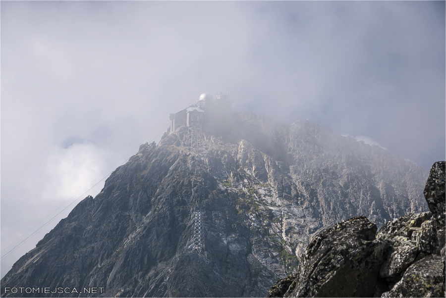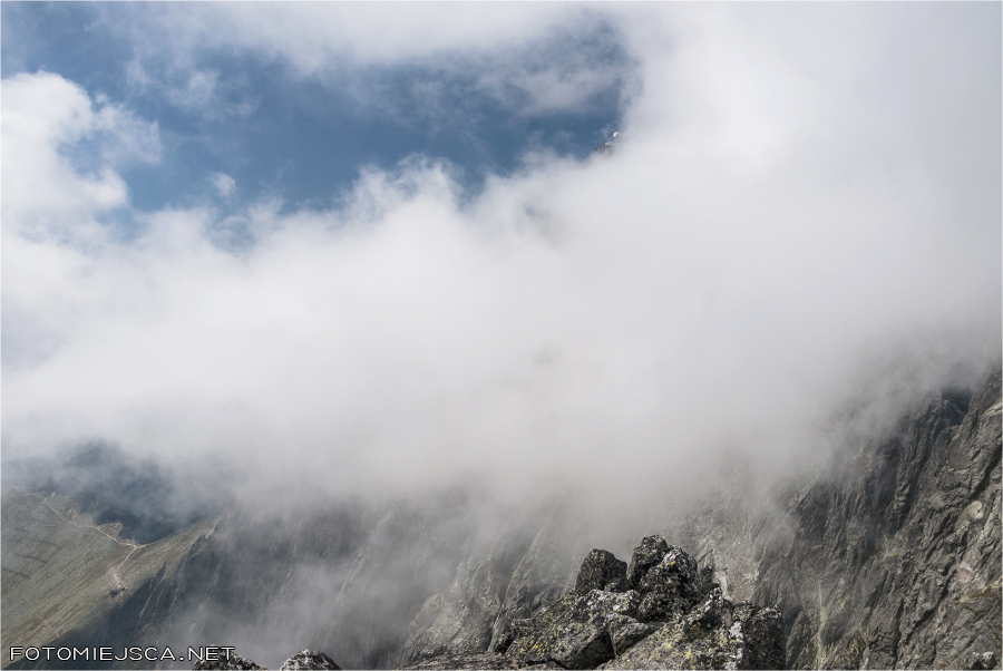 Chmury kłębią się jeszcze jakiś czas ale dzięki temu oglądamy wspaniałe widowisko. Szczyt Łomnicy wychyla się na kilka sekund by znów przykryć się białą pierzynką. I tak kilka razy. Mamy dziwne uczucie jakby w chmurze ktoś siedział i gadał, a to tylko ochy i achy ludzi odwiedzających łomnickie balkony.
