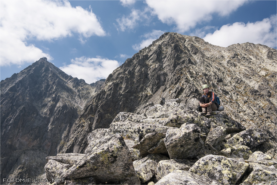 Na Kieżmarskim siedzimy prawie 2 godziny. Jesteśmy sami. Czas mamy niezły ale do samochodu daleko a chcemy wejść jeszcze na Mały Kieżmarski i być może na Huncowski Szczyt. Ruszamy w dół na przełączkę między Kieżmarami. Na Małym cykamy pamiątkowe foto i szukamy miejsca skąd widać Schronisko przy Zielonym Stawie Kieżmarskim.