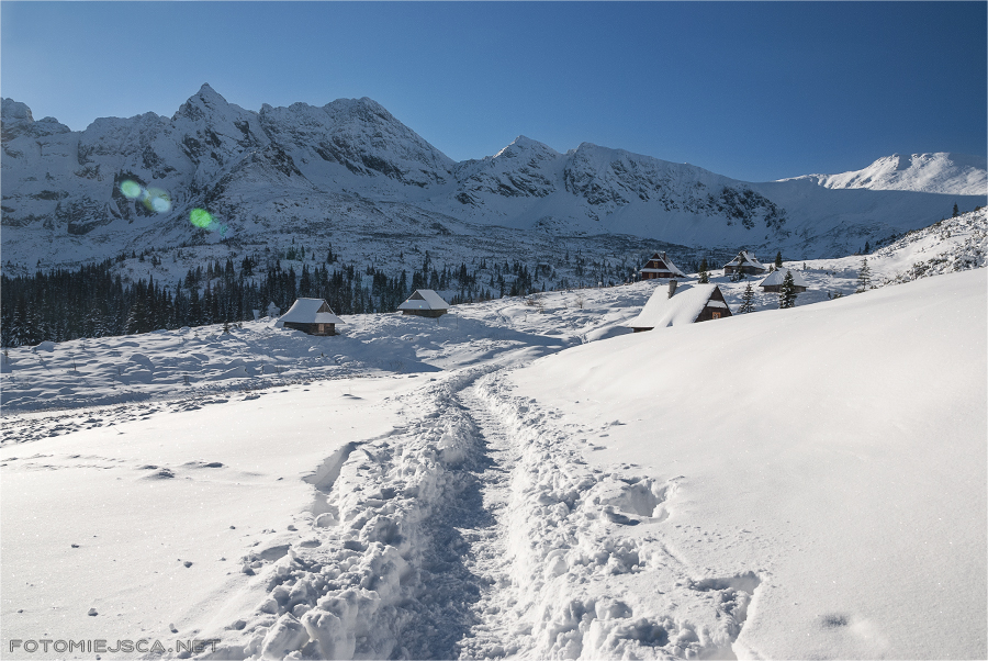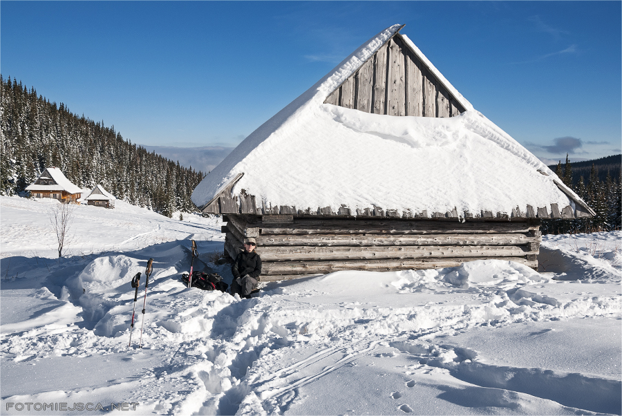 Pierwszy raz widzimy Halę Gąsienicową w zimowej szacie. Jest pięknie, cicho i pusto, kilka osób na krzyż z nami włącznie.