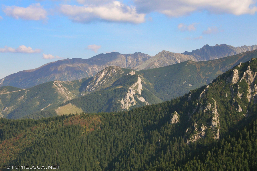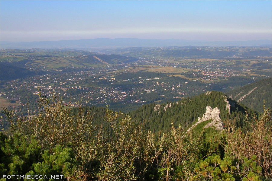 Patrząc na północ w dole widać całe Zakopane oraz pasmo Gubałówki. Na horyzoncie majaczą łagodne Beskidy.